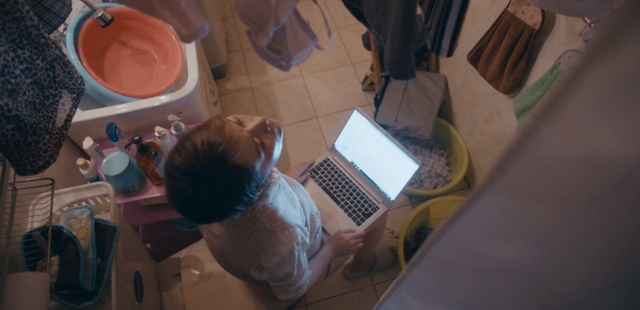 《安家》中,宫蓓蓓蜗在厕所一角写论文