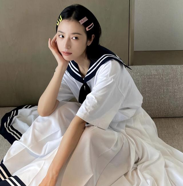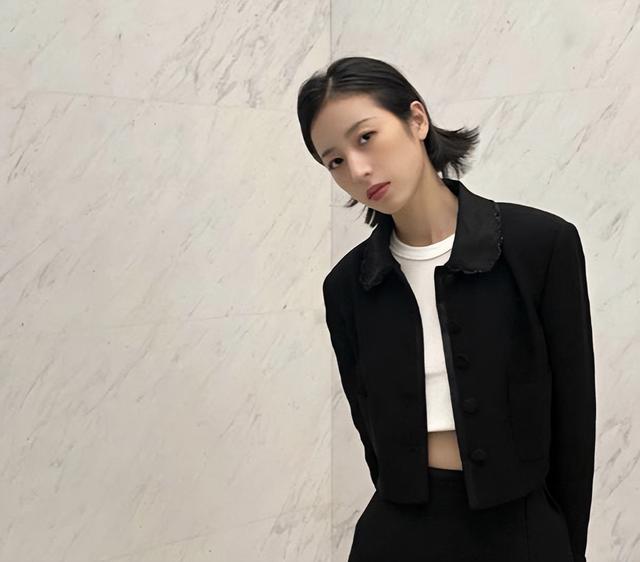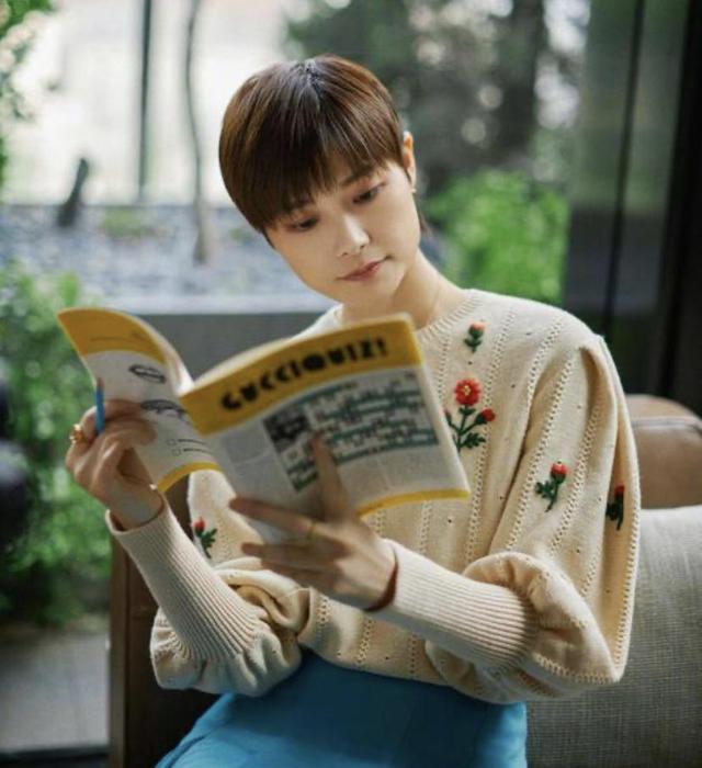 她有一套学院风造型获得了无数好评,娃娃领套装长裙,贴头皮的中分短发,洋溢着青春的气息。