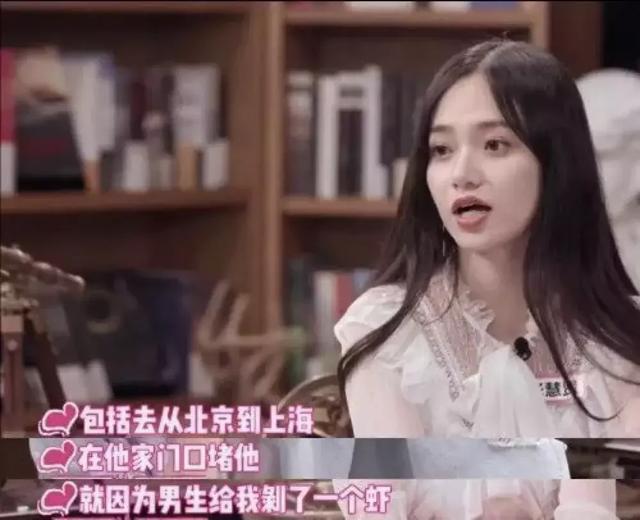 她说过这样事,有一个和她暧昧着的男生曾经为她剥过一次虾,她就认准了对方,从北京追到上海,还在他家门口堵他。