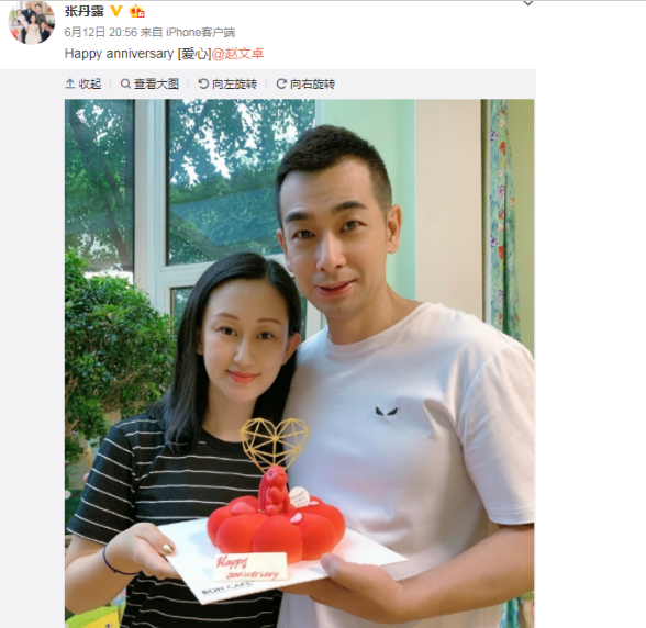 赵文卓与张丹露在2006年结婚,距离他们结婚至今已经过去13年了,夫妻俩的感情却是一直很好,恩爱不减让人羡慕。结婚13周年时,张丹露还在社交平台里发布了夫妻俩手拿心型蛋糕合影的亲密合照。