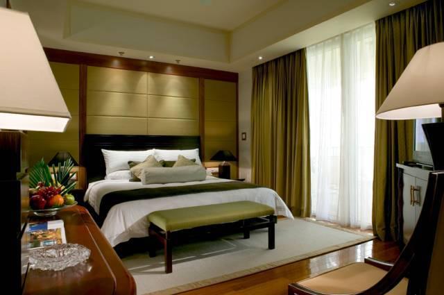 酒店依山临海,拥抱着椰林、沙滩和温泉,置身于山麓、岛屿之中,独占山上精华,是一家“国际化、智能化、生态化”的超豪华五星级商务度假型酒店,也是全国首家荣获“5A级绿色饭店”荣誉称号的酒店。