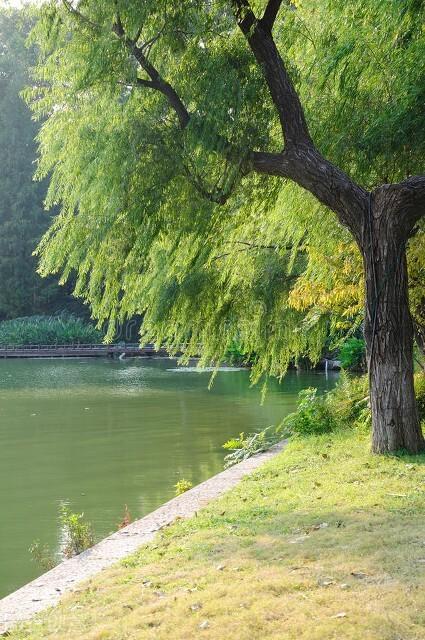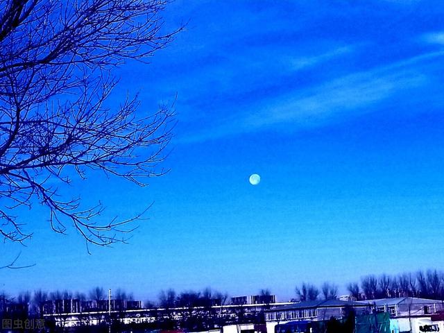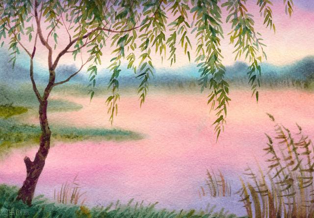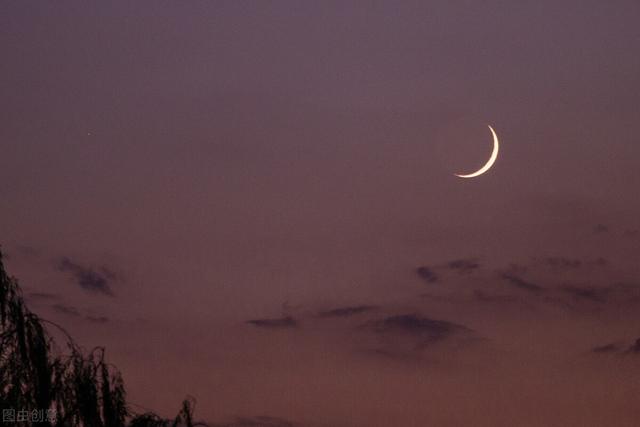 在杨柳边,迎接晨间之冷风与残月。
