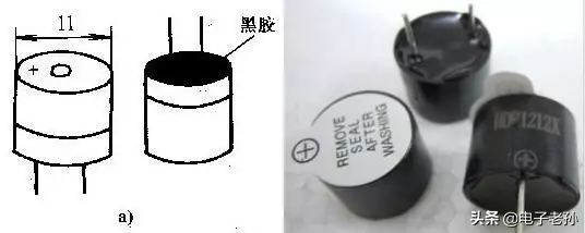 1.外形不同: 两种蜂鸣器的引脚都朝上放置时,可以看出绿色电路板的是一种无源蜂鸣器,没有电路板而用黑胶封闭的一种是有源蜂鸣器。