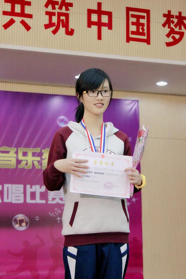 梁玉莹获得九中2013年“十大校园歌手”冠军时的照片。校方供图