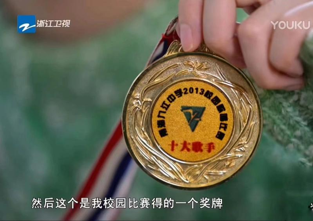 梁玉莹在节目中亮出自己在九江中学时的奖牌。网络视频截图