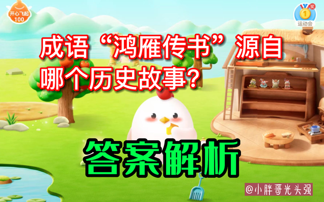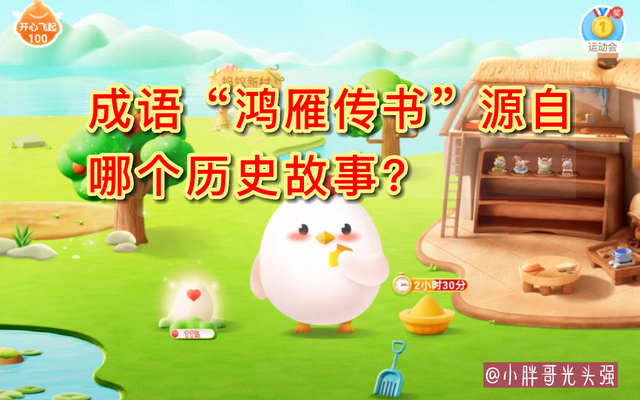 蚂蚁庄园答案:成语“鸿雁传书”源自以下哪个历史故事?是“苏武牧羊”还是“昭君出塞”?正确答案:苏武牧羊。