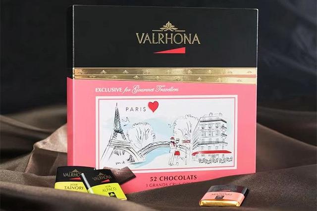法芙娜的这款巴黎精选巧克力礼盒很适合情人节送礼,粉色的四方形外包装盒,看起来好似一瓶巨大的法国香水,里面共有52块巧克力,这个数字也有“我爱你”的含义,三种口味,有花香馥郁的阿帕可、酸红色果味的曼特尼、果香浓郁的塔诺丽,三种巧克力的可可也分别产自三个国家,严谨、高品质的用料,让爱人吃的安心放心。