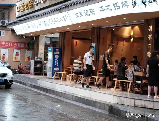 就这样上山下山折腾下来就到了晚餐时间,也是最为值得期待的时光。继续打卡绥山东路。其实从山上下来,真的有点被冷到,心里只想喝点热乎的,跷脚牛肉自然就是我们的不二之选了。“口福老店跷脚牛肉”在巷口很大一个招牌,当时也是在电视里看到了关于他家的报道后,种草很久,今天可以开开心心拔草了!