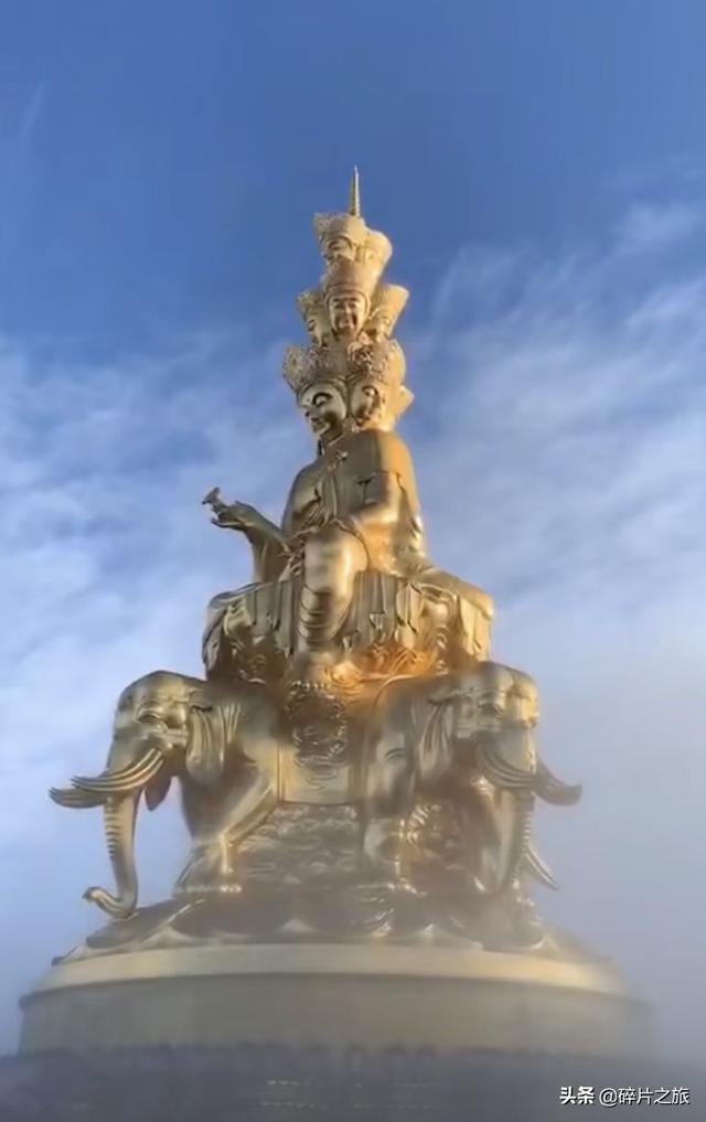 达到金顶后,真如同西游记里那般取得真经的景象,云雾缭绕,佛光普照,瞬间心灵就感觉被彻彻底底地做了一次除尘,当下只有对菩萨的顶礼膜拜,别无他念。