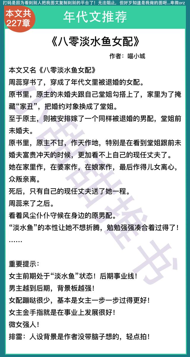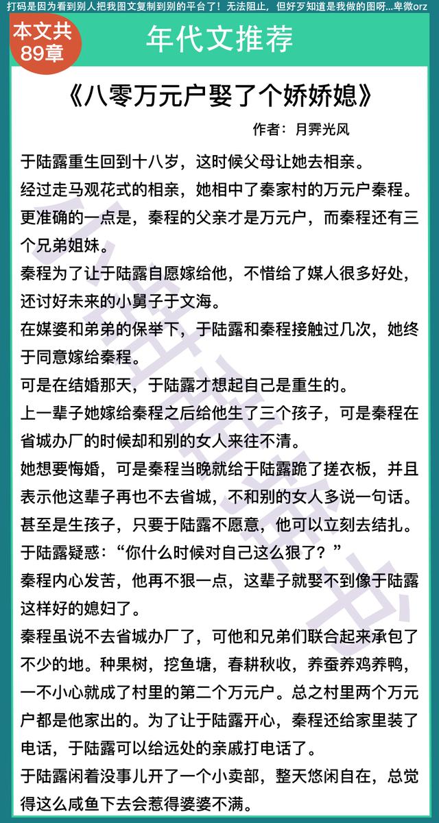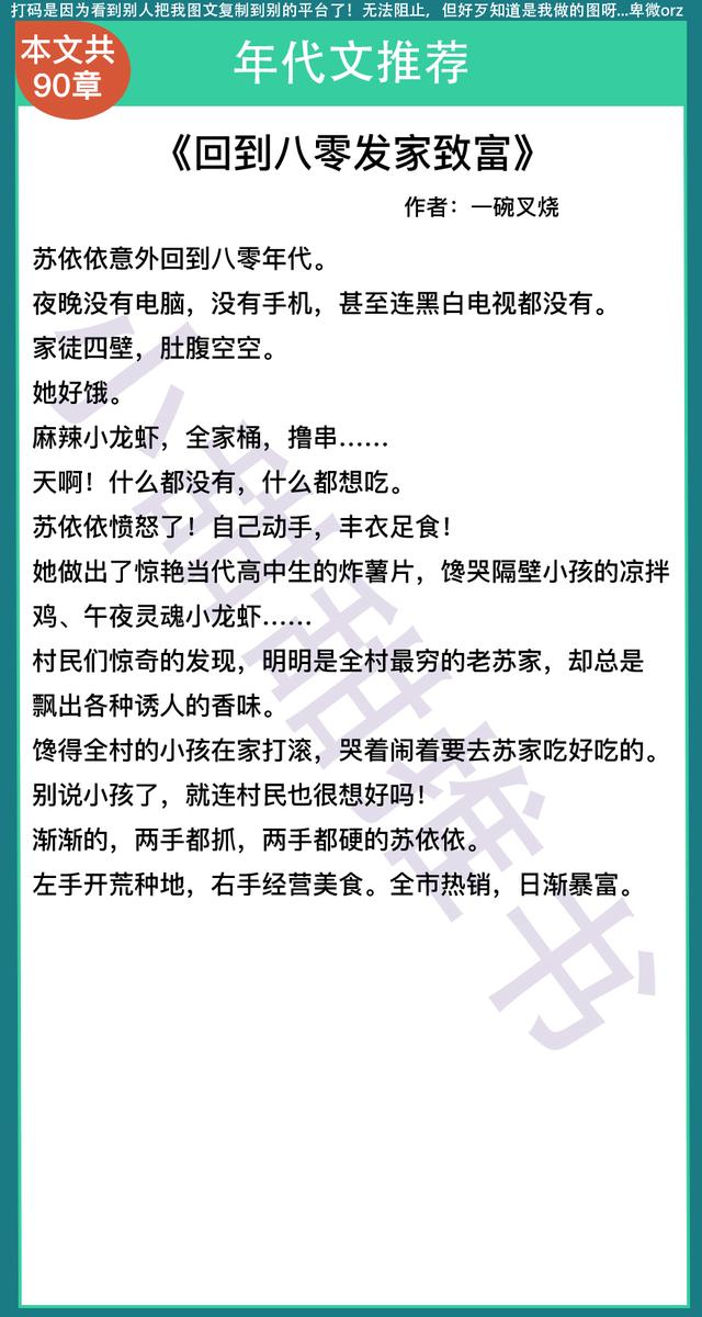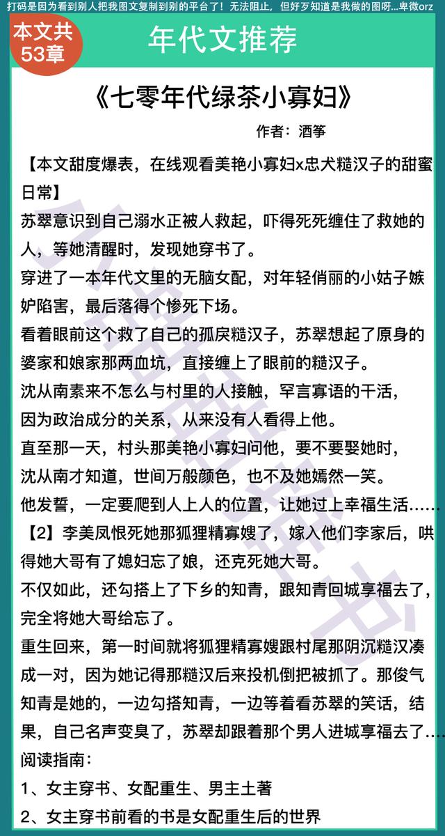 大家好,这期给大家推荐的是7本新完结的年代种田文!