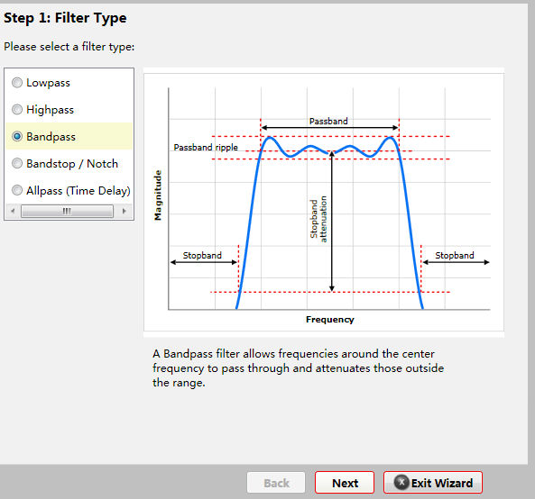 一块国外的软件Filter Pro。打开之后,选择我们需要的滤波器模型,按照上面的案例,我们这里选择带通滤波器,如下图:
