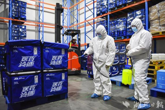 在物资配送上,京东物流在湖北多地园区实施“泡泡”管理模式,通过建立“气泡”一样的运营单元,对仓储、分拣、运输、配送全供应链物流环节的相关人员进行闭环管理,配足口罩、手套、酒精、洗手液等防疫物资。快递员每天送货前查验24小时核酸,每次进出站点测量体温并对配送车辆、车筐等消毒,对进站的每个包裹进行多次消杀。