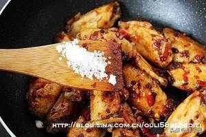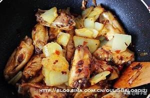 13.再放入鸡翅膀不断翻炒
