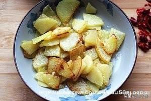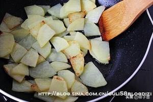 15.然后放入土豆片不断翻炒均匀