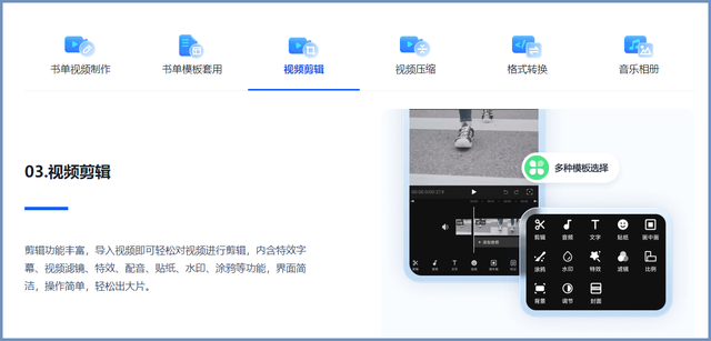 里面有非常丰富的视频模板可以使用,并且会经常更新热点模板内容,直接套用模板可以快速创作流行短视频内容,还可以添加视频特效以及贴纸等元素,功能多实用性强比较推荐!