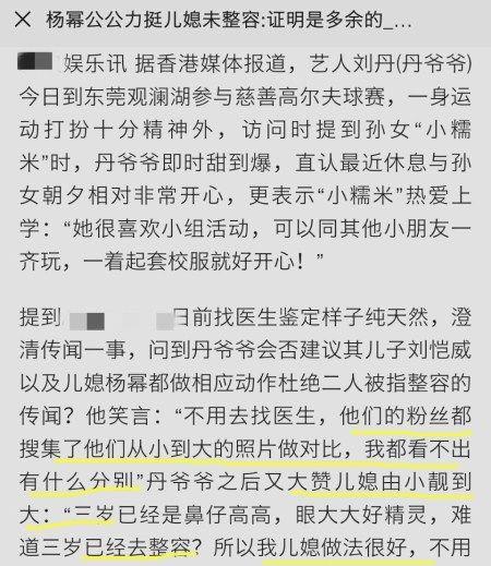 文章对比了杨幂上围的变化,认为“别人怀疑她隆胸也不是没有道理了,肉眼可见地增大”,更搬出2013年前后一位不大知名的女星爆料,称隆胸“还有一个圈内的杨幂”。