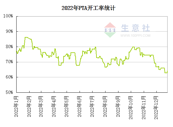 受制于效益差及原料PX供应问题,PTA实际开工率并不高,由于部分装置长期停车及今年部分PTA大厂加大检修力度,2022年行业开工率进一步走低至60%附近,年PTA平均负荷在73.9%附近。