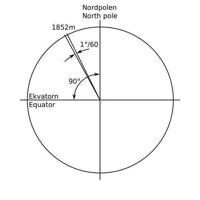 这样以来,将地球的周长除以360,就得到了每度的距离,再除以60也就得到了每分的距离,也就是海里。由于地球的形状并不是一个完美的球体,1分的纬度距离也并不恒定,因此关于海里的计算各国都有不同的标准,但也相差不大。1929年在摩纳哥举行的国际水文地理学会议(International Extraordinary Hydrographic Conference),将1海里为了1.852千米,以便于统一计算。
