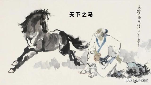 但如果主公要找一个真正会找天下马的人的话,我到是有一个可推荐之人:“臣有所与共担缠薪菜者,有九方皋”,这个人是跟我做苦工的,我砍来的柴呀他会帮我捆起来,在家里扫扫地啊,倒倒垃圾,这个人的名字叫九方皋。“此其于马,非臣之下也”,这个人看马的本事绝对不比我差。虽然他默默无闻,言不压众,貌不惊人,但在伯乐的眼中他是高人,所以举荐给秦穆公!