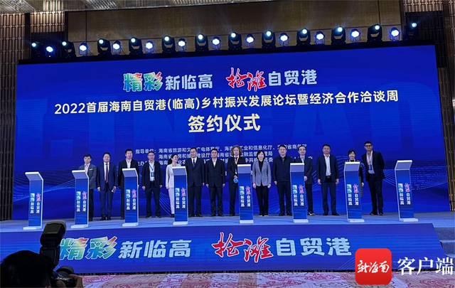 新海南客户端、南海网、南国都市报12月12日消息(记者 林文泉)12日上午,“精彩新临高 抢滩自贸港”2022首届海南自贸港(临高)乡村振兴发展论坛暨经济合作洽谈周开幕仪式在临高县举行。仪式现场,临高县人民政府与中信建设有限责任公司海南分公司、北京航天驭星科技有限公司等7家企业签署投资合作协议,与中国移动通信集团海南有限公司等3家企业签署合作框架协议,涉及热带特色高效农业产业、海洋经济产业、装配式建筑产业和数字经济创新产业等多个产业领域,助推临高高质量发展。