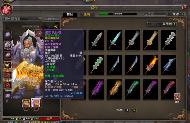 单手剑幻化完毕后从装备栏转移到主手,然后拿上盾牌,直接切换防战专精,整个过程就完成了。而这个时候的战士就是一个手持双手剑加盾牌的防战了,并且这种外观是永久存在的,无论是释放技能,上坐骑,还是“跑尸”都不会移除。
