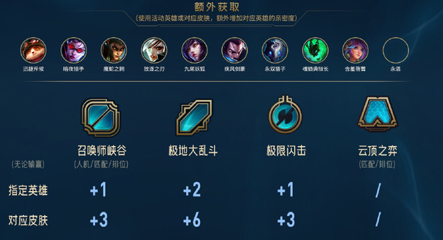 而这次的灵魂莲华事件,其实是把之前的代币任务改成了亲密度任务。玩家可以根据新事件里的提示,比如用对应的英雄/皮肤玩游戏,拿更多的视野分/控制分等等,去提升一下亲密度。咋一看目前的几个英雄亲密度是分开的,但已经玩了两天的朋友应该发现了,亲密度其实是共享的,你现在攒的想提前解锁谁的头像都是可以的,所以不需要为了VN的头像专门去玩VN,完全可以靠胜场来,下面是亲密度的获取方式。