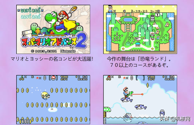 《超级马力欧Advance2》(スーパーマリオアドバンス2)本作是《超级马力欧WOLRD》的remake版本,在一些细节方面与原版不同。