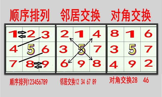 方法二,更简单,口诀:顺序排列,5居中间,邻居交换,12,34,67,89,对角交换。下面一张图你能看懂吗。