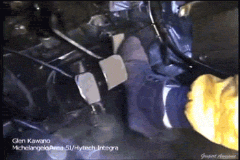 降档补油在日常驾驶中还比较好操作,但在驾驶赛车减速降挡的过程中,必须用到“跟趾动作”,也就是下方动图中的操作方式: