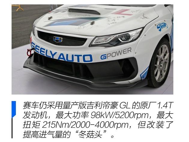 在介绍赛车的驾驶方法之前,我先简单讲解一下“超吉联赛”今年的比赛用车-吉利帝豪GL改装赛车。相对于那些半赛车化的改装车,“超吉联赛”所使用的赛车改装的部件并不算多,而且动力方面基本没有动过。