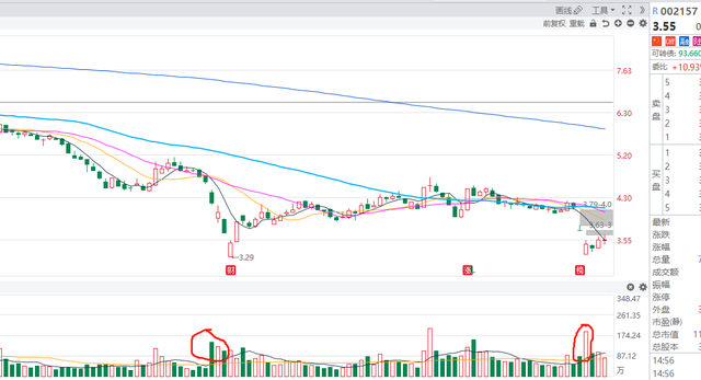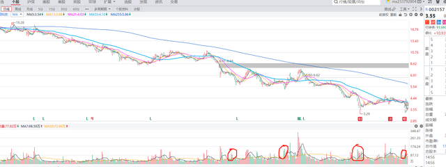 以上画红圈的位置,就是我认为的下跌末端放量阴线。