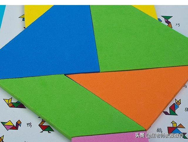 2、教师依次拿出图形与孩子再次观察、讨论七巧板的可以怎么拼。
