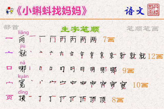 生字确实有些多,而且很多字的笔画比一年级时难多了,但是也不要紧,只要将他们的笔画顺序记住,要掌握这些字就不再是难事,可以每次掌握一部分,不两天就会完全掌握这些生字。