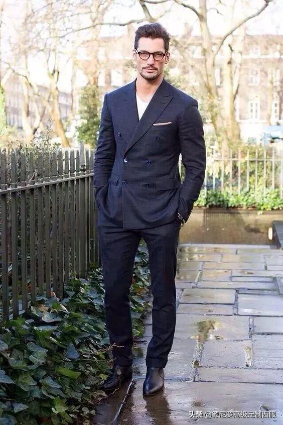 喜欢双排扣西装的男士们,不妨从简单的四粒扣西装开始穿起,尽量选择扣眼较下的款式。但千万记住不要扣最下面的扣子,给你的小肚子一点儿喘息的空间吧~