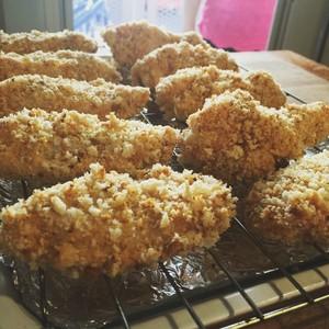 配方:鸡翅戳几个洞或者割几刀以后,这样的话就会方便腌制入味。鸡翅加糖、盐、黑胡椒粉、辣椒粉、五香粉、料酒腌制几个小时以后入味,鸡蛋打散备用,面粉和面包糠也准备好就ok。