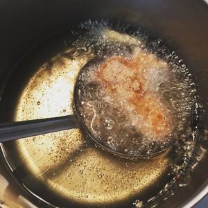 等炸到两边定型再慢火炸几分钟至熟透就ok,筷子能戳进去再炸一会儿保证断生以后,我用滤勺炸至定型就ok。