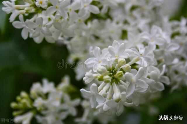 (1)丁香花的花苞圆圆的,鼓鼓的,恰如衣襟上的盘花扣。