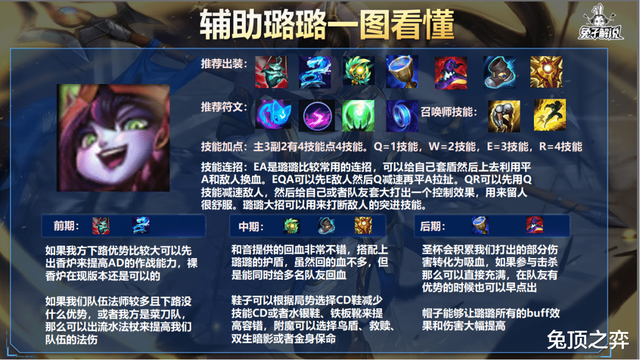 大家好,我是兔子攻略组的大马猴。今天给大家分享一下璐璐的新玩法,为什么今天出璐璐呢,因为璐璐最近的一款新皮肤便宜又好用,让璐璐的热度大幅提升,干脆我就借此机会分享一下在这个版本,璐璐如何配合队友去上分,希望能对大家有所帮助,那么话不多说,我们进入正题。