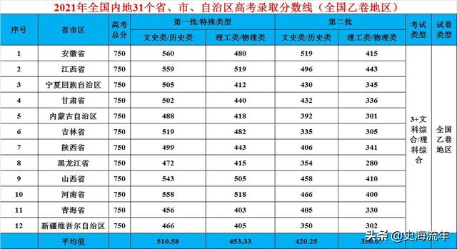 一、2021年高考全国乙卷地区文史类最低录取分数线