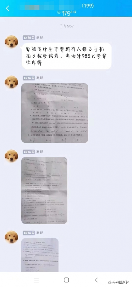 7日下午5点57分, 网名为“离暗”的网友在QQ群中说,安陆高中生作弊群有人带了手机拍了数学试卷,考场外985大学帮忙作弊。