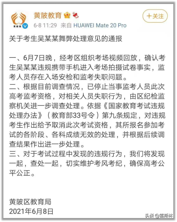在官方通报中,作弊者最终得到的处罚是,取消全部考试成绩。