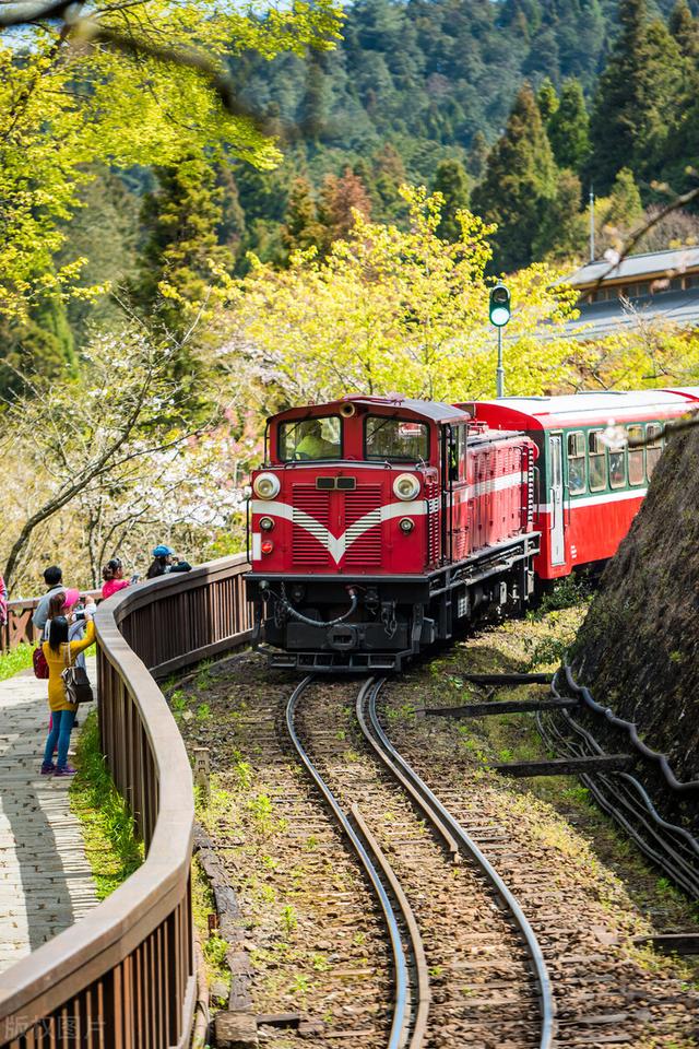 通往阿里山的森林铁路可与阿里四景合称五奇。阿里山森林铁路是世界上仅存的三条登山铁路之一。游览阿里山,可由嘉义县乘森林铁路列车到阿里山林区的眠月。铁路由海拔30米上升到2450米,坡度之大举世罕见。沿线有大小隧道66处,最长的有800米。火车从山脚登峰,似沿螺旋梯盘旋而上,绕山跨谷钻隧洞,鸟雀在火车轮下飞翔,十分奇异有趣。
