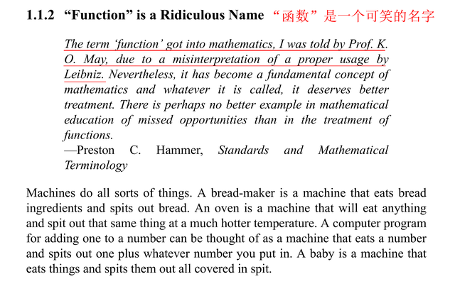 其中专门有一节谈到“函数”——“"Function" is a Ridiculous Name(函数是一个可笑的名字)”。