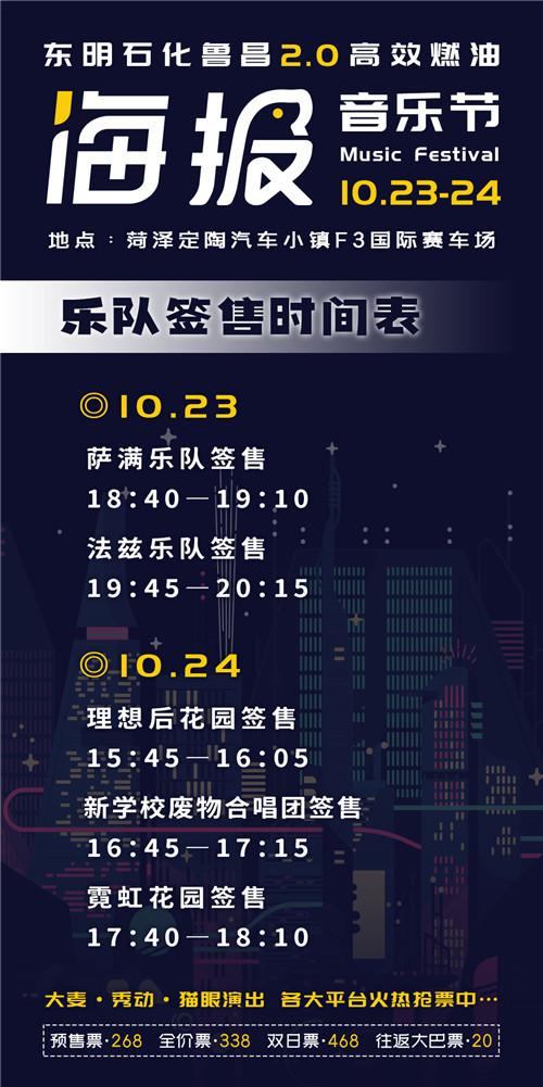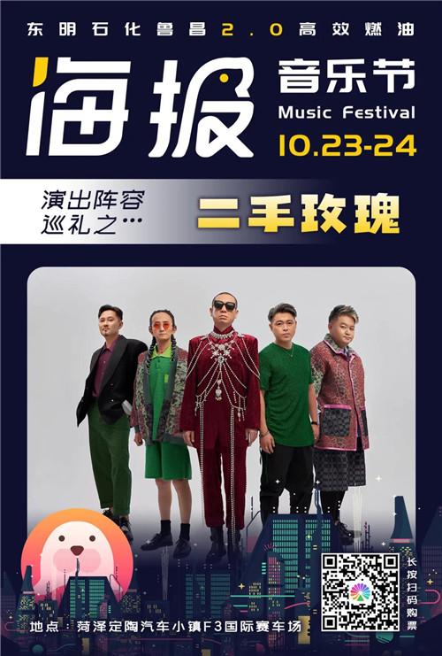 10月23日至24日,2021东明石化鲁昌2.0高效燃油菏泽海报音乐节将在定陶汽车小镇F3国际赛车场举行。作为本次菏泽海报音乐节的压轴乐队,二手玫瑰将在第一天20时55分登台演出,为乐迷献上特色的摇滚歌曲。