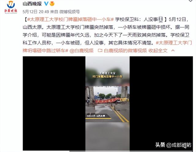 太原理工大学牌匾掉落