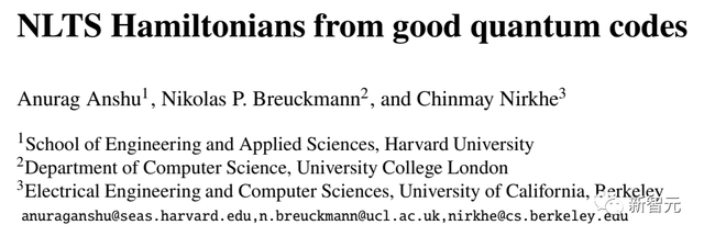 今年6月,来自哈佛大学、伦敦大学学院和加州大学伯克利分校对三位计算机科学家,在一篇论文中首次实现了NLTS猜想的证明。