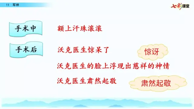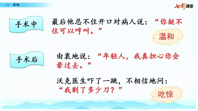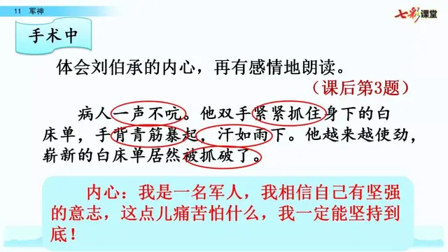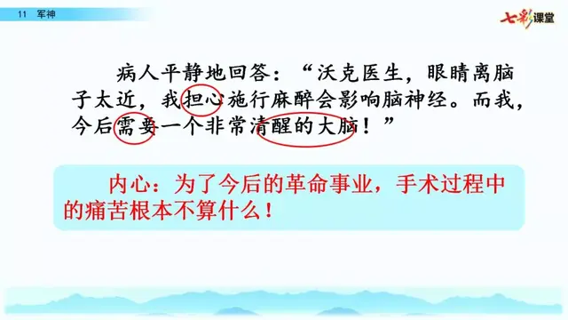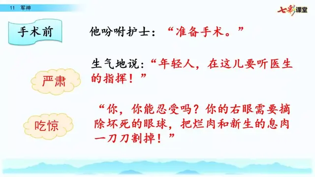 二、1.手术复杂,要有忍受剧痛的思想准备。 2.突出军神的坚强。