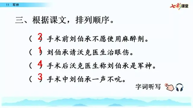 四、按照课文叙述的顺序给下面的叙述加上序号,写在前面的括号里。