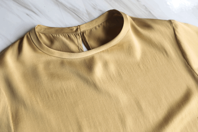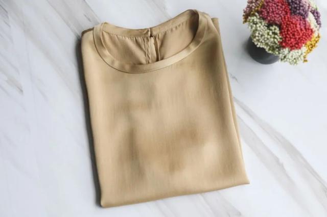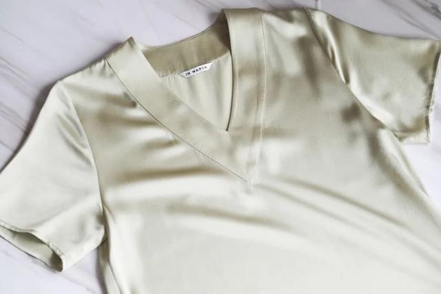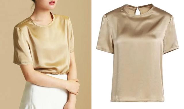 这件T恤颜色非常好看,是比香槟色更成熟贵气的浅驼色,融合真丝材质很有知性美~