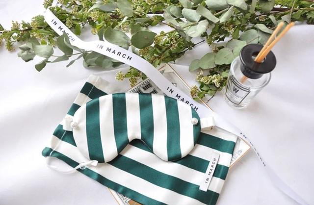 其中这款白绿条纹最受欢迎,配色简洁经典颇有法式风情。他家每个眼罩都会附带真丝小袋,方便收纳、保护眼罩,也是很贴心。
